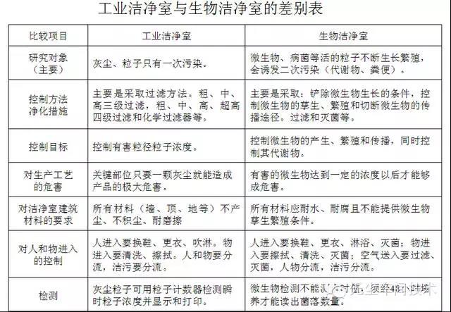 工業潔凈室與生物潔凈室的差別(見圖片)